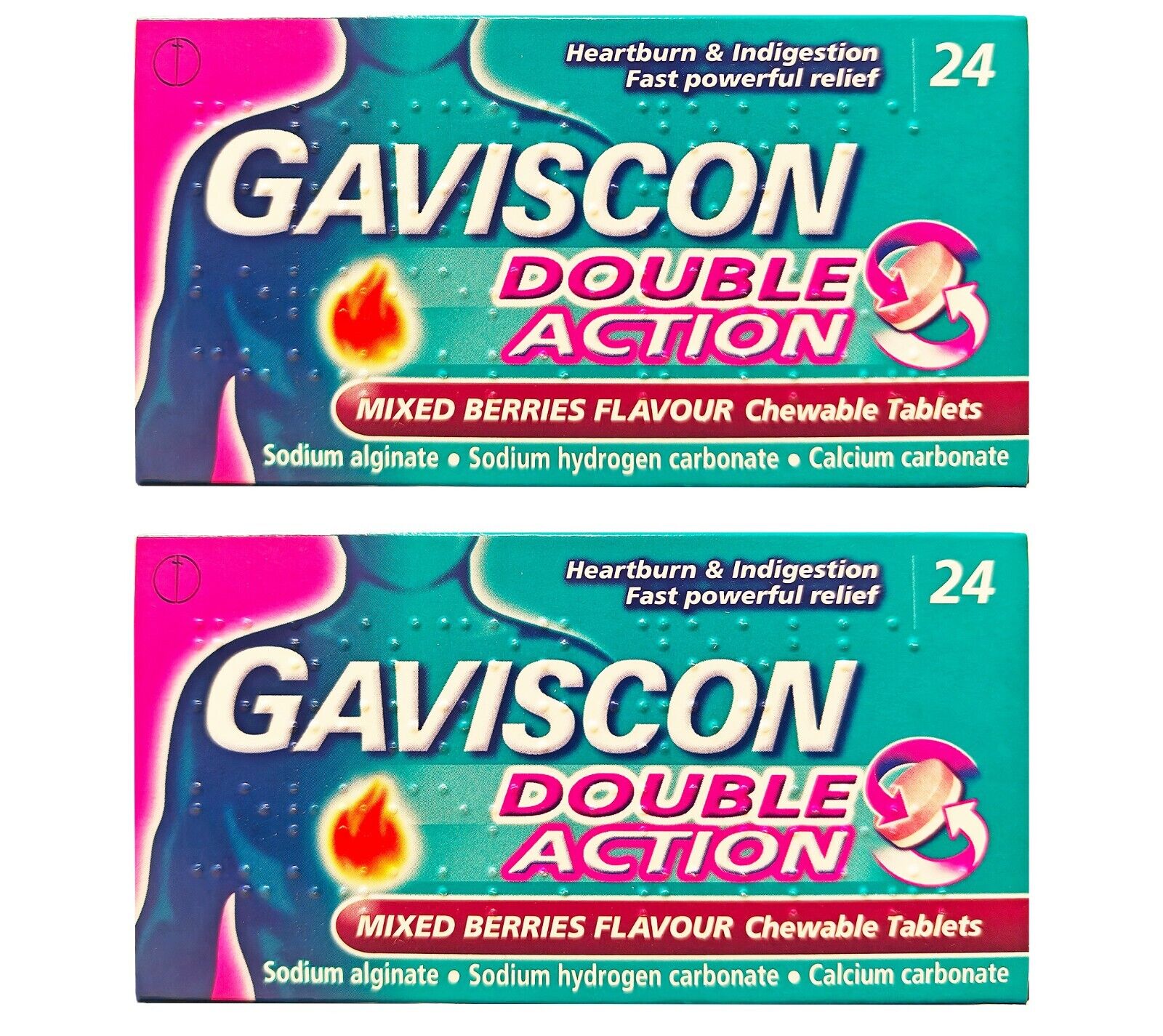 2 x GAVISCON DOUBLE ACTION TABLETS MIXED BERRIES 24 TABLETS