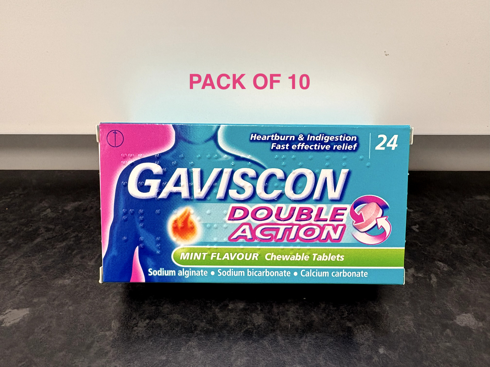 10 x 24 Gaviscon Double Action | Mint Flavour Chewable | Total 240 Tablets