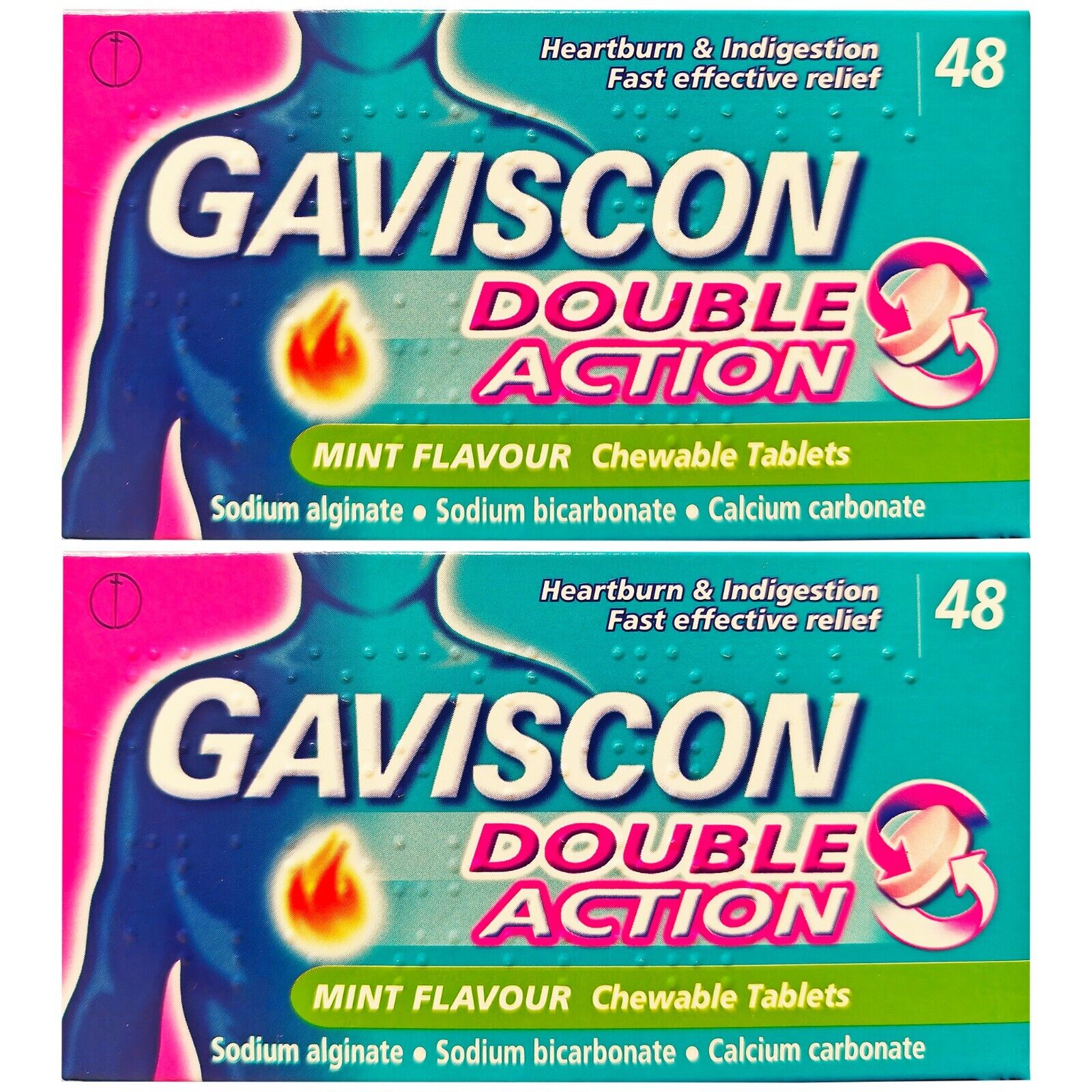 Gaviscon Double Action Mint Flavour Tablets Indigestion Heartburn 48 x 2 (96)
