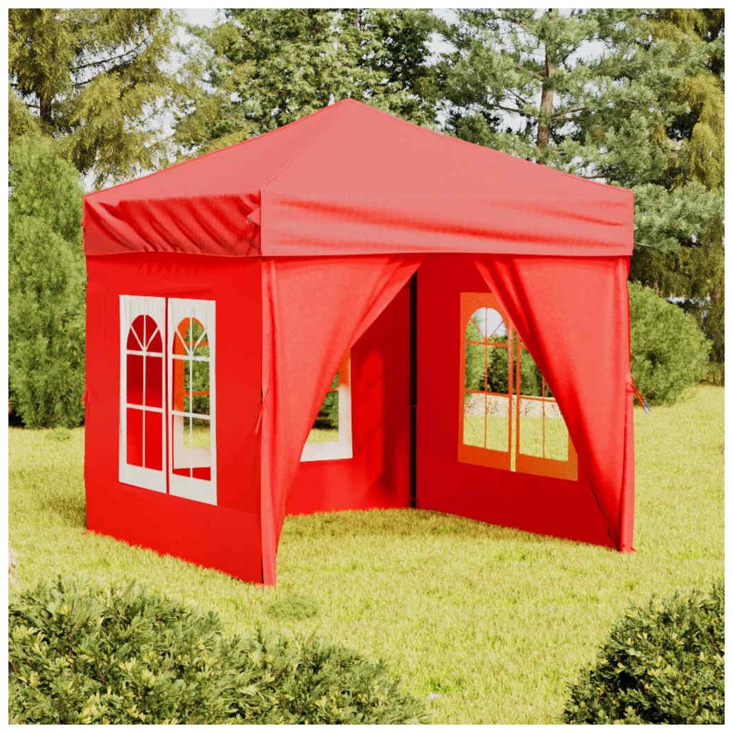 Gazebo Pop-up 2x2m Red 210D Oxford Silver Coated Canopy UV w/ Frame & Sidewalls