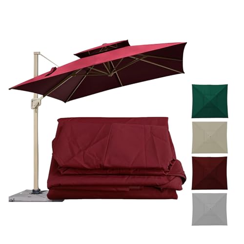 Patio Umbrella Covers 3x3 2.5x2.5m Square Cantilever Parasols Replacement Canopy Cover 8 Ribs,2-Tier Top,Ventilation, Waterproof Sunscreen Fabric For Garden Market Outdoor Beach(Dark-Red,3x3m)