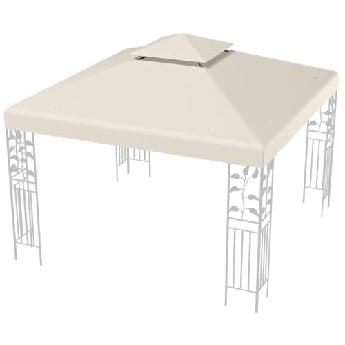 Outsunny 3 x 3(m) Gazebo Canopy Replacement Cover 2-Tier Roof Top Spare Part Beige (TOP COVER ONLY)