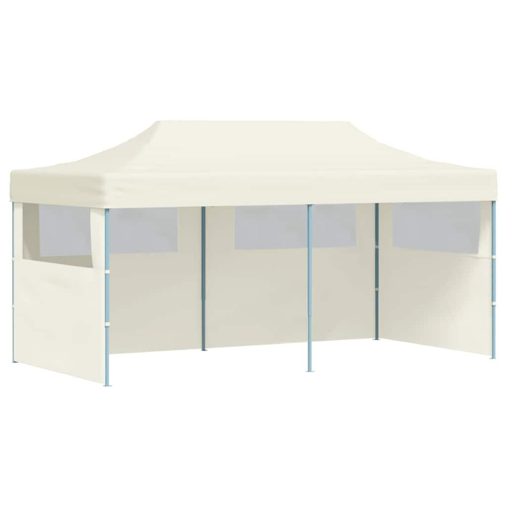 Garden Gazebo Foldable Cream 291x291x315cm Powder-Coated Steel 2 Sidewalls PVC!