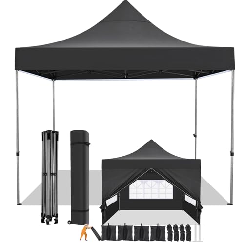 COBIZI Folding Gazebo, 3 x 3 cm, Waterproof, Stable, Winterproof with Side Walls, Pop-Up Gazebo, Party Tent, Sun Protection, Garden Gazebo, Foldable with Bag with Wheels (3 x 3 m, Black)
