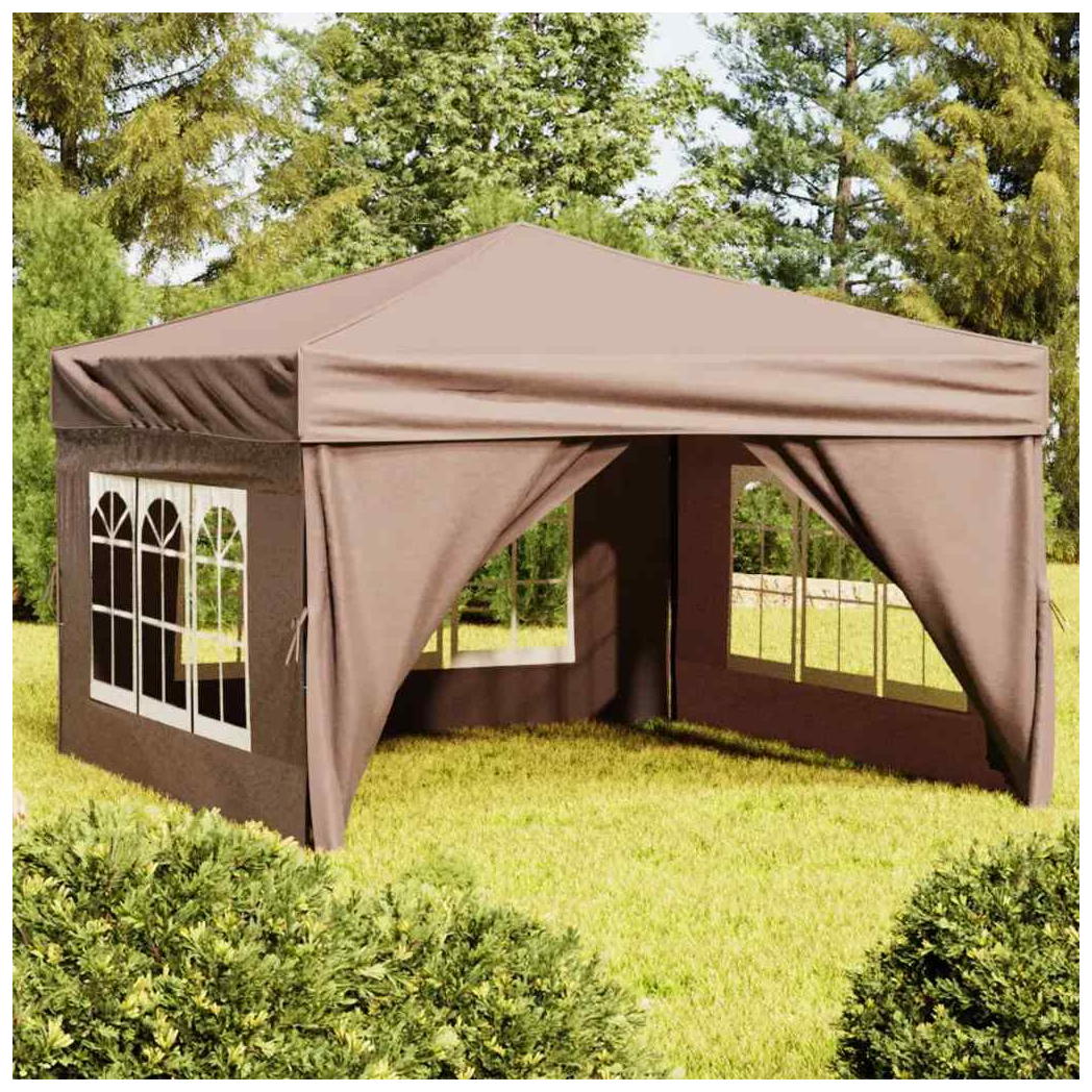 Gazebo 3x3m Taupe 210D Oxford Silver-Coated Foldable Canopy with Sidewalls.
