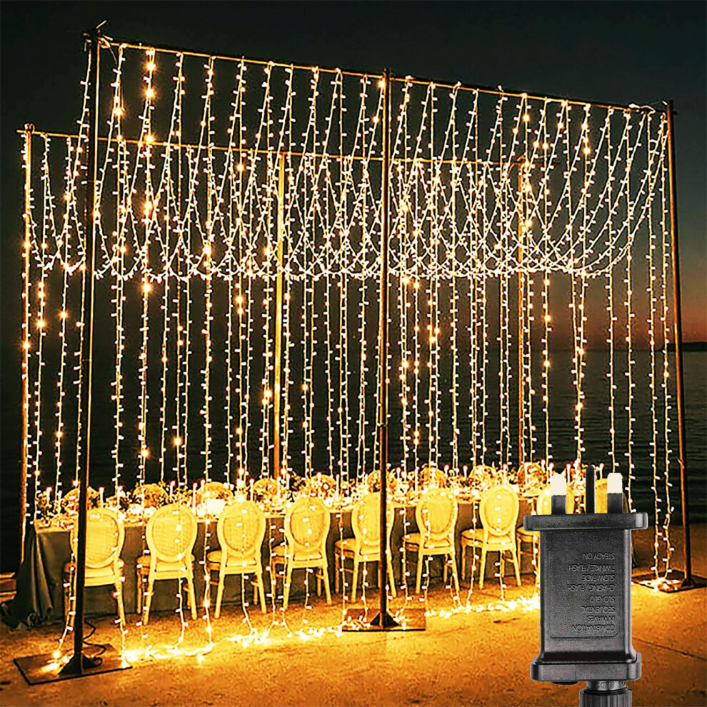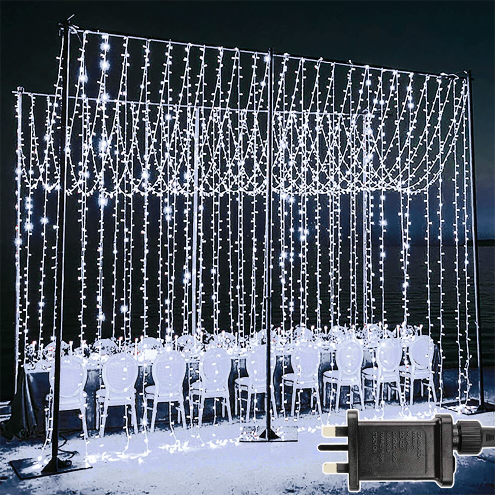yowin Curtain Lights 600 LED 6m x 3m Gazebo Lights Mains Powered with Timer, 8 Modes Curtain Fairy Light Outdoor Waterproof Wall Hanging Light for
