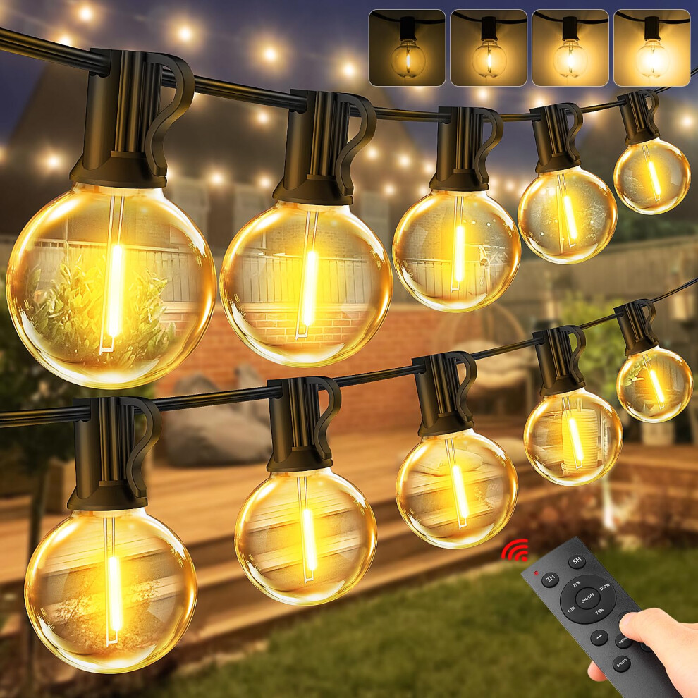 Vanranger Festoon Outdoor Lights Mains Powered with Remote Control G40 Garden Outside Festoon Lights Mains Powered 45M 150Ft for Gazebo Pergola with
