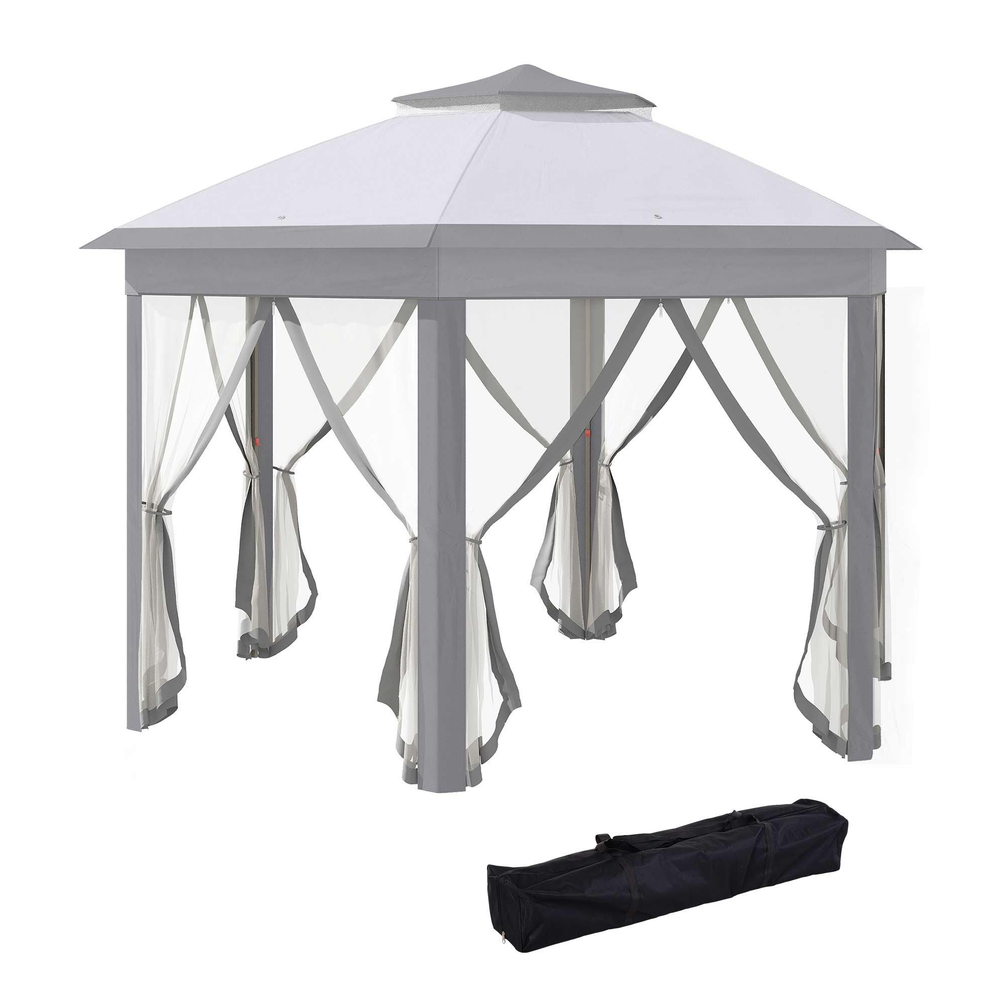 Outsunny 3 X 3 M Garden Gazebo Patio Party Tent Shelter Outdoor Canopy Double Tier Sun Shade Metal Frame Light Grey