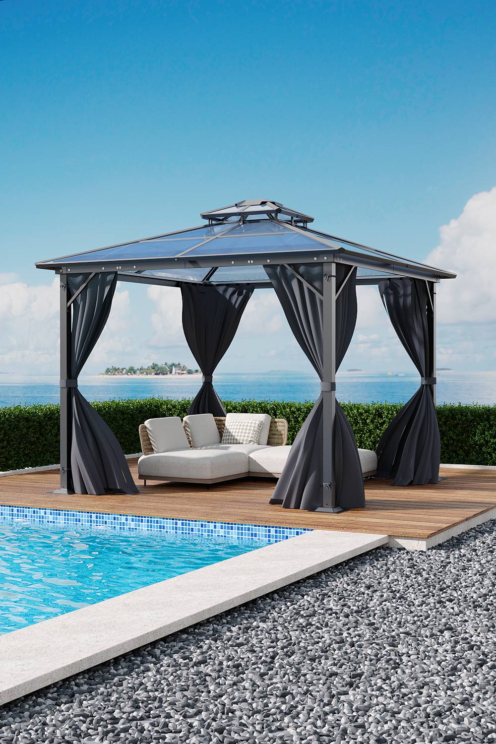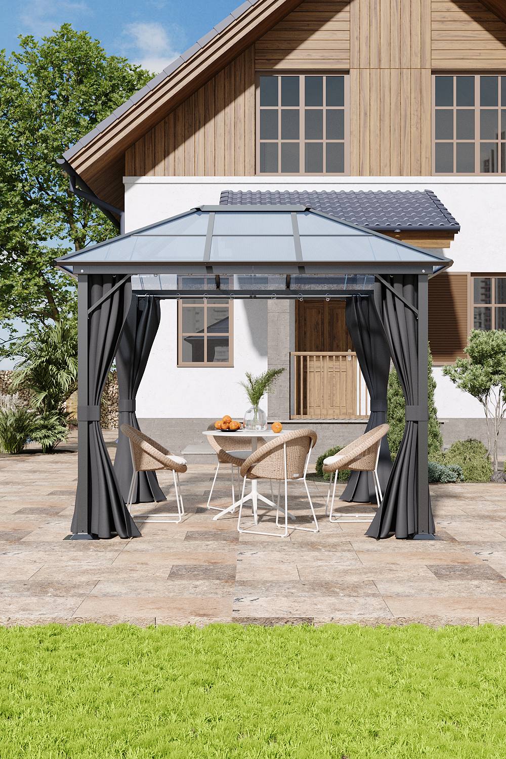 Living and Home 10 x 10FT Metal Frame Hardtop Patio Gazebo with Curtains in Dark Grey