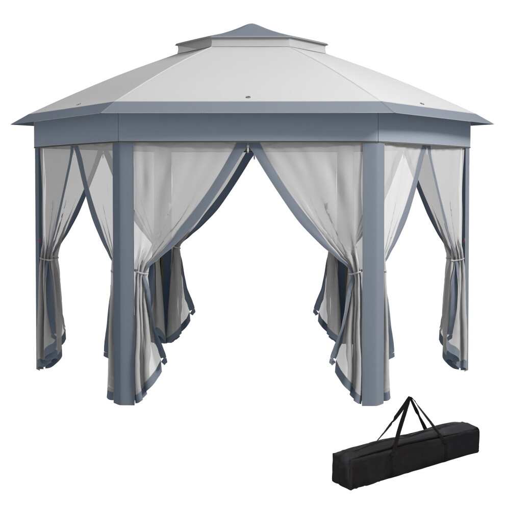 Outsunny 3 x 4m Metal Frame Hexagon Gazebo, with Curtains - Grey