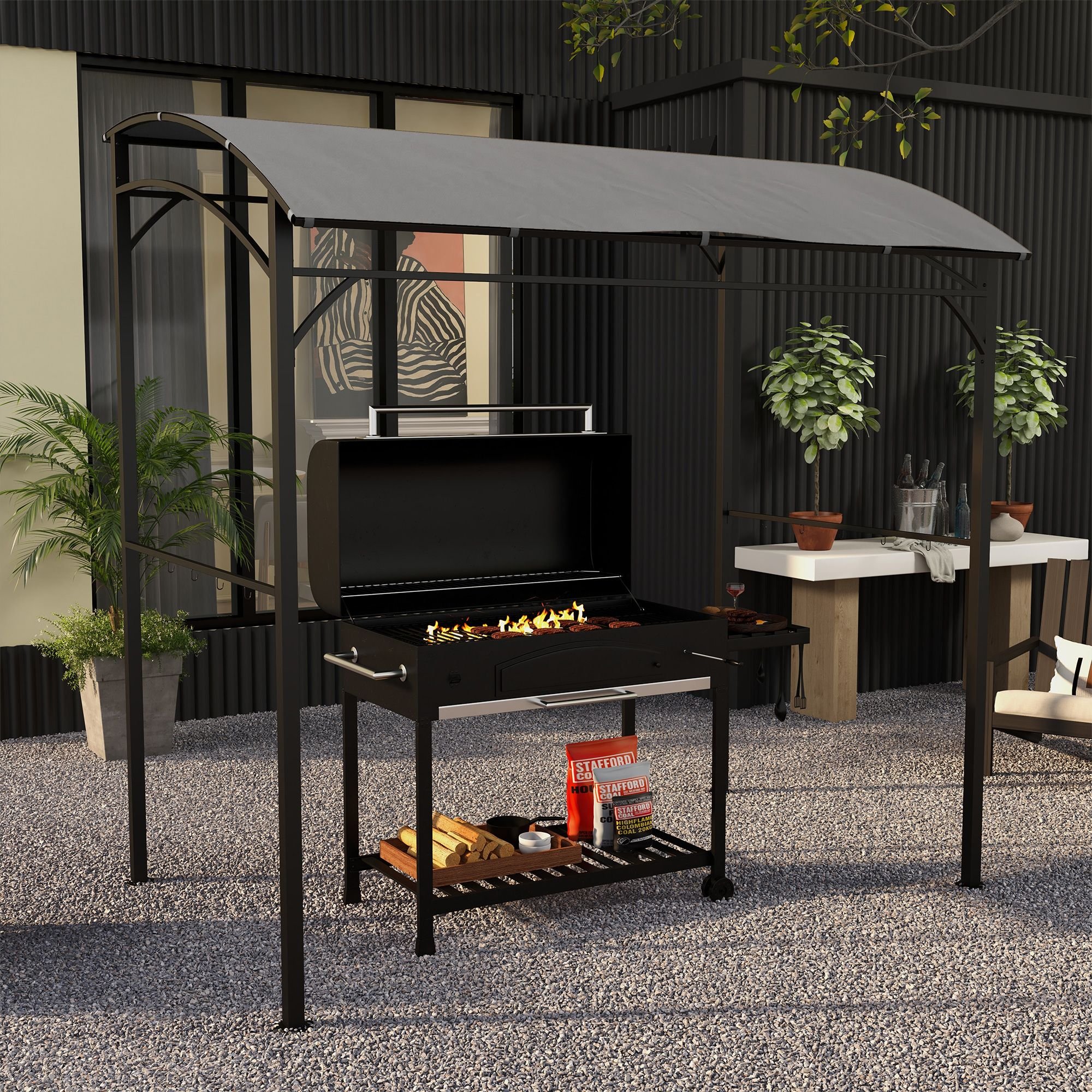 Outsunny 2.2 X 1.5 M Bbq Grill Gazebo Tent, Garden Grill With Metal Frame, Curved Canopy And 10 Hooks, Outdoor Sun Shade, Grey