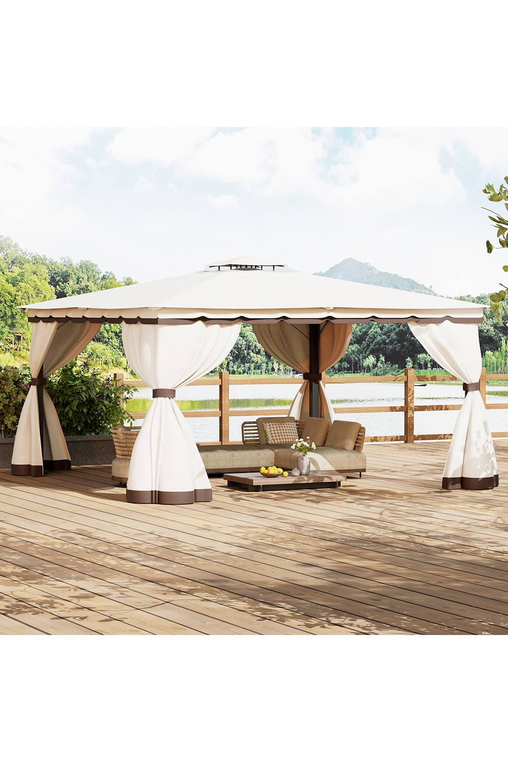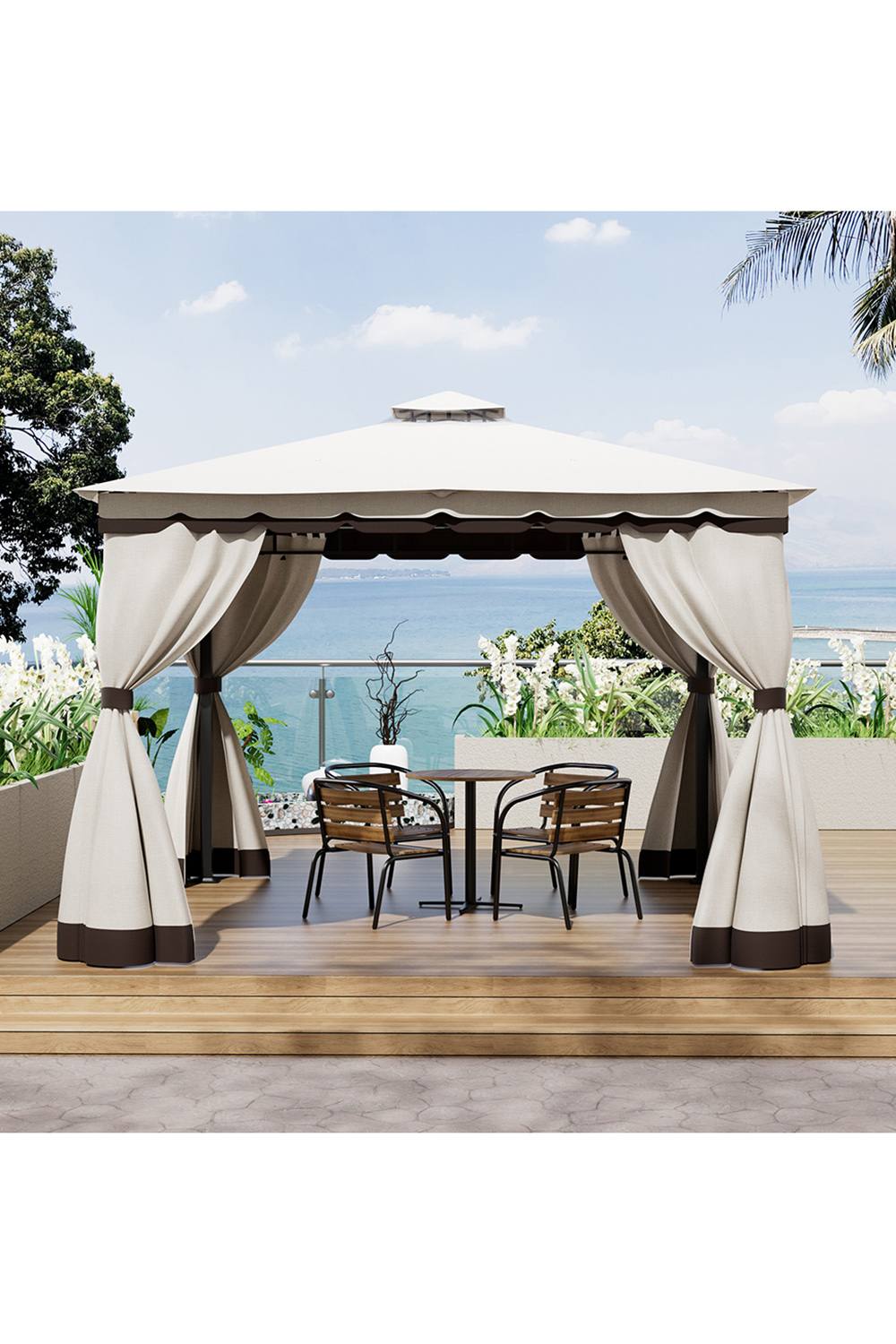 Outsunny 3 X 3 M Garden Gazebo Patio Party Tent Shelter Outdoor Canopy Double Tier Sun Shade Metal Frame Beige