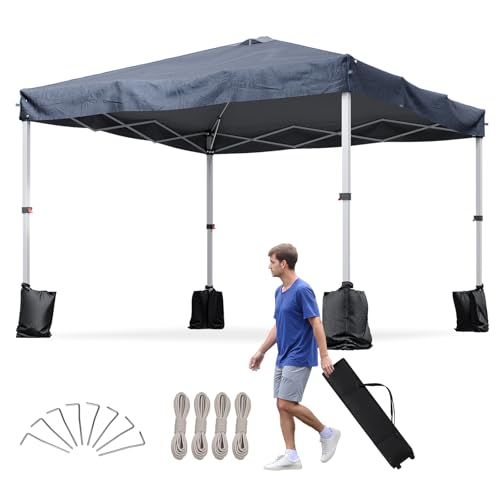 Aoxun 3m x 3m Pop Up Gazebo, Metal Frame Shelter Tent for Outdoor Garden Party, with 4 Sandbags & Carry Bag, Adjustable Height, Grey