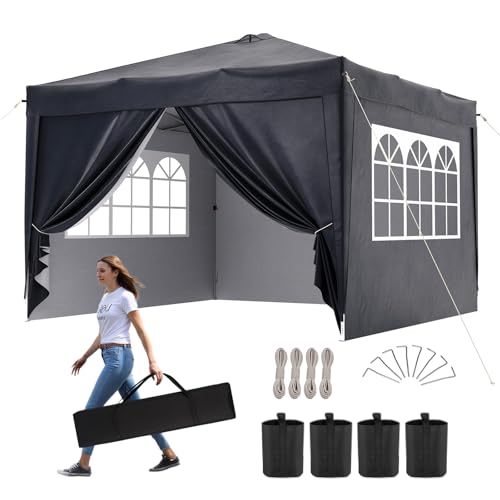 Aoxun 3m x 3m Pop Up Gazebo with Sides, Metal Frame Shelter Tent for Outdoor Garden Party, with Mesh Windows & 4 Sandbags & Carry Bag, Grey