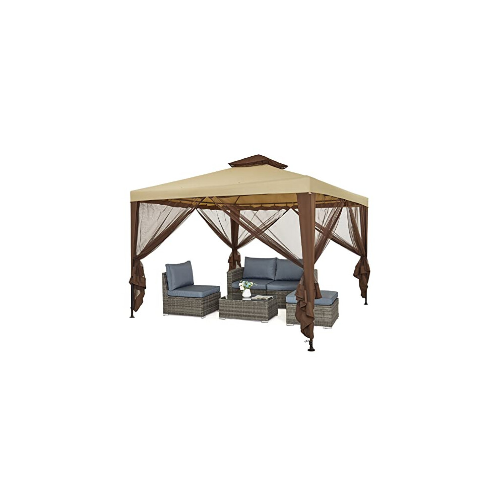 Mondeer Garden Gazebo 3x3m, Heavy Duty Outdoor Patio Pavilion with Double Tier Roof and Netting Sidewalls, Metal Frame, Luxury Modern Style, Khaki
