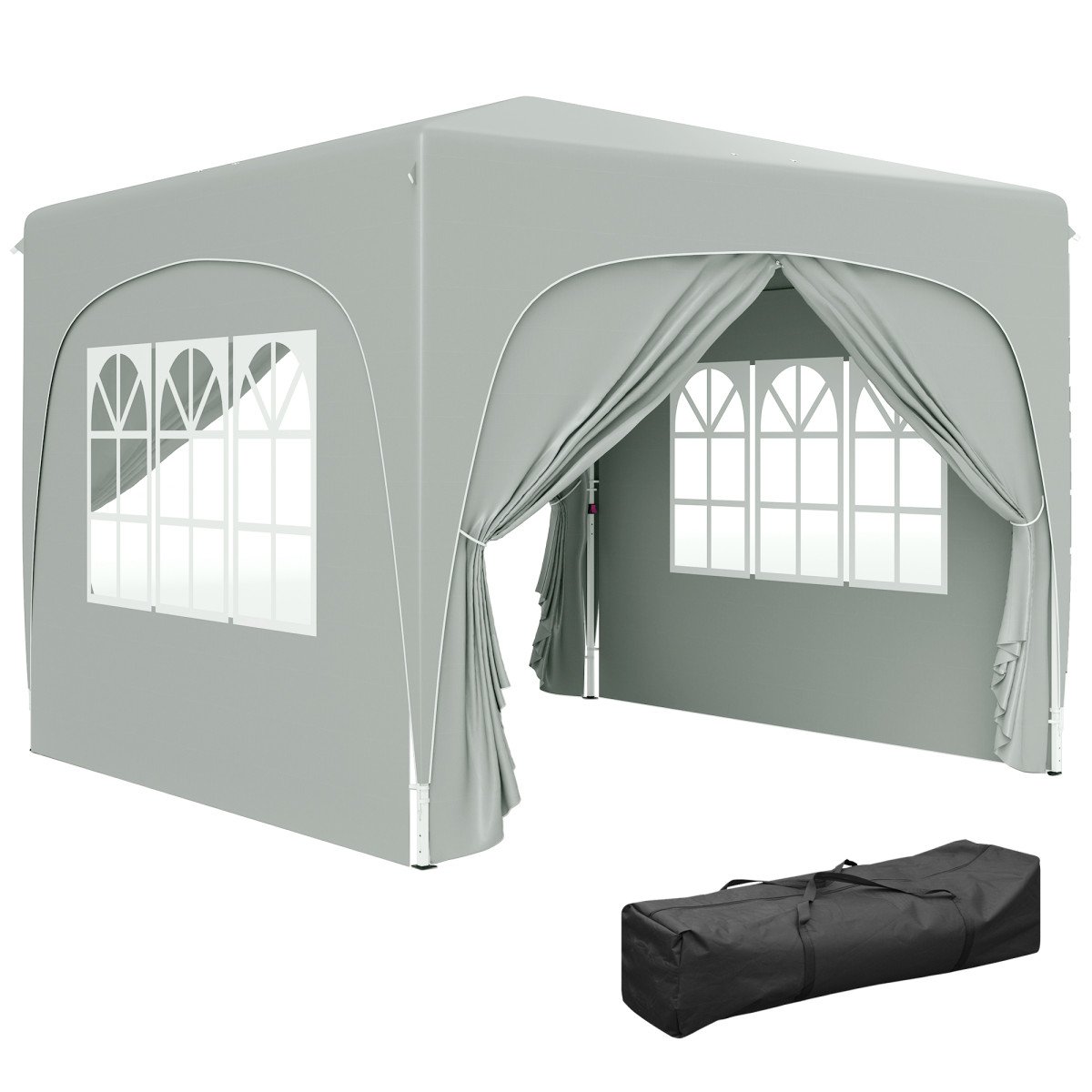 Gazebo 3x3 m, 2 Side Walls, Metal Frame, PE Cover, Window, Enclosed Festival Party Tent Event Shelter, White