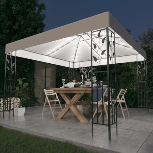 3x3 m Taupe Gazebo with LED String Lights, Spacious Outdoor Canopy Tent for Garden and Patio, Solar Powered Lights for Evening Ambiance, Durable Steel Frame with Polyester