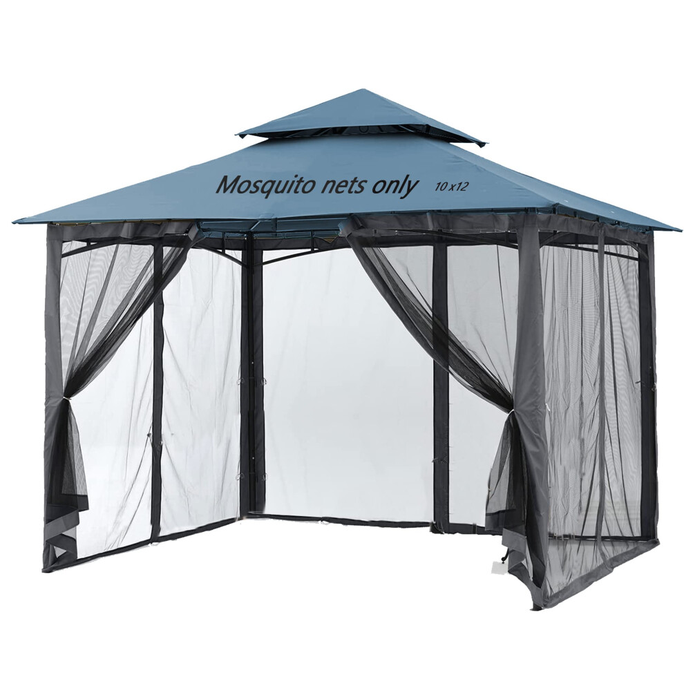 Mosquito Netting for Gazebo Canopy Replacement Screen Walls Netting with Slip Rings 4-Door Zipper Easy to Install Black (Net Only) (10x12FT)