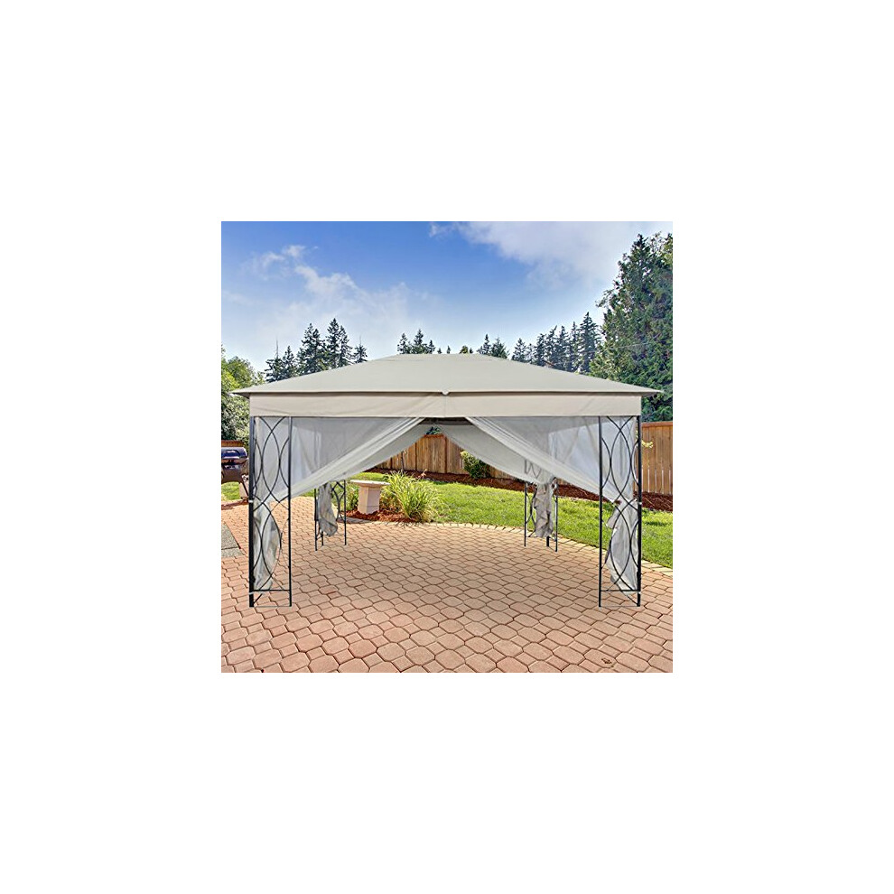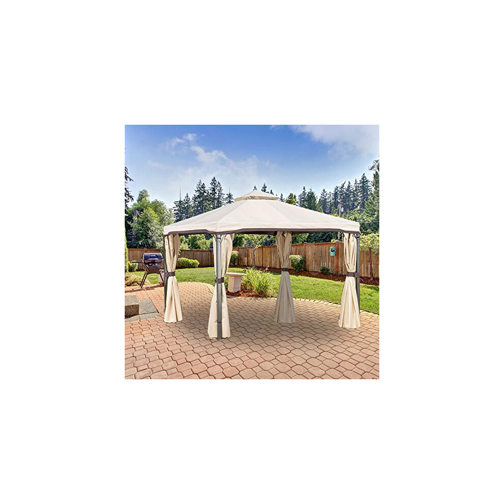 10'x10' Gazebo Replacement Canopy Top Cover (Beige) - Dual Tier with Plain Edge Polyester UV30 Water Resistant for Outdoor Garden Patio Pavilion Sun
