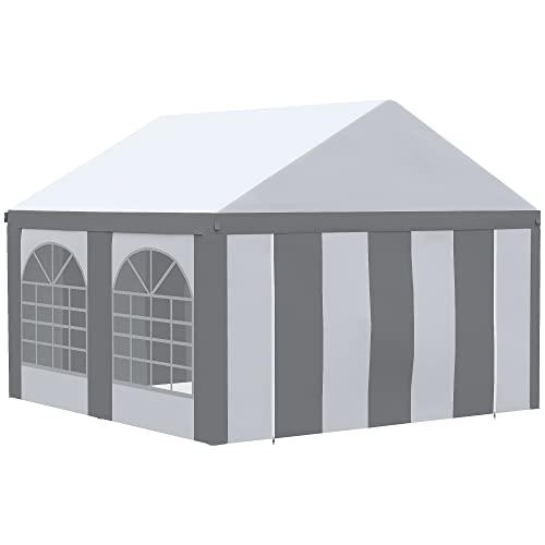 Outsunny 4 x 4m Galvanised Party Tent, Marquee Gazebo with Sides, Four Windows and Double Doors, for Parties, Wedding and Events