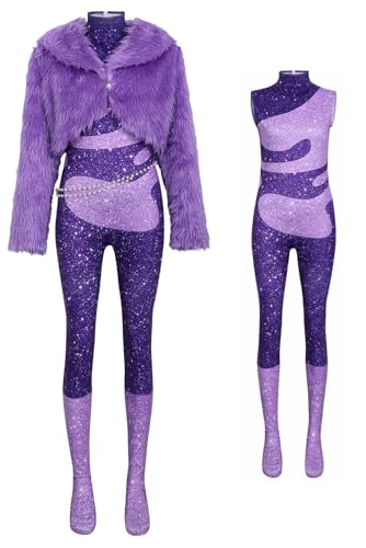 Yulefly Gazelle Costume Gazelle Horn Animal Themed Headbands Zoo Costume Purple Jumpsuit Carnival Costume Halloween M