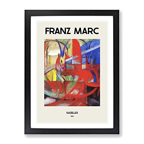 Gazelle By Franz Marc Exhibition Museum Painting Framed Wall Art Print, Ready to Hang Picture for Living Room Bedroom Home Office Décor, Black A3 (34 x 46 cm)