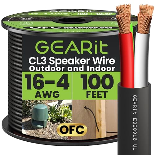 GearIT 16/4 Speaker Wire (100 Feet) 16AWG Gauge, Black 4-Conductors/Outdoor Direct Burial in Ground/in Wall / CL3 CL2 Rated - OFC Oxygen-Free Copper, Black 100ft