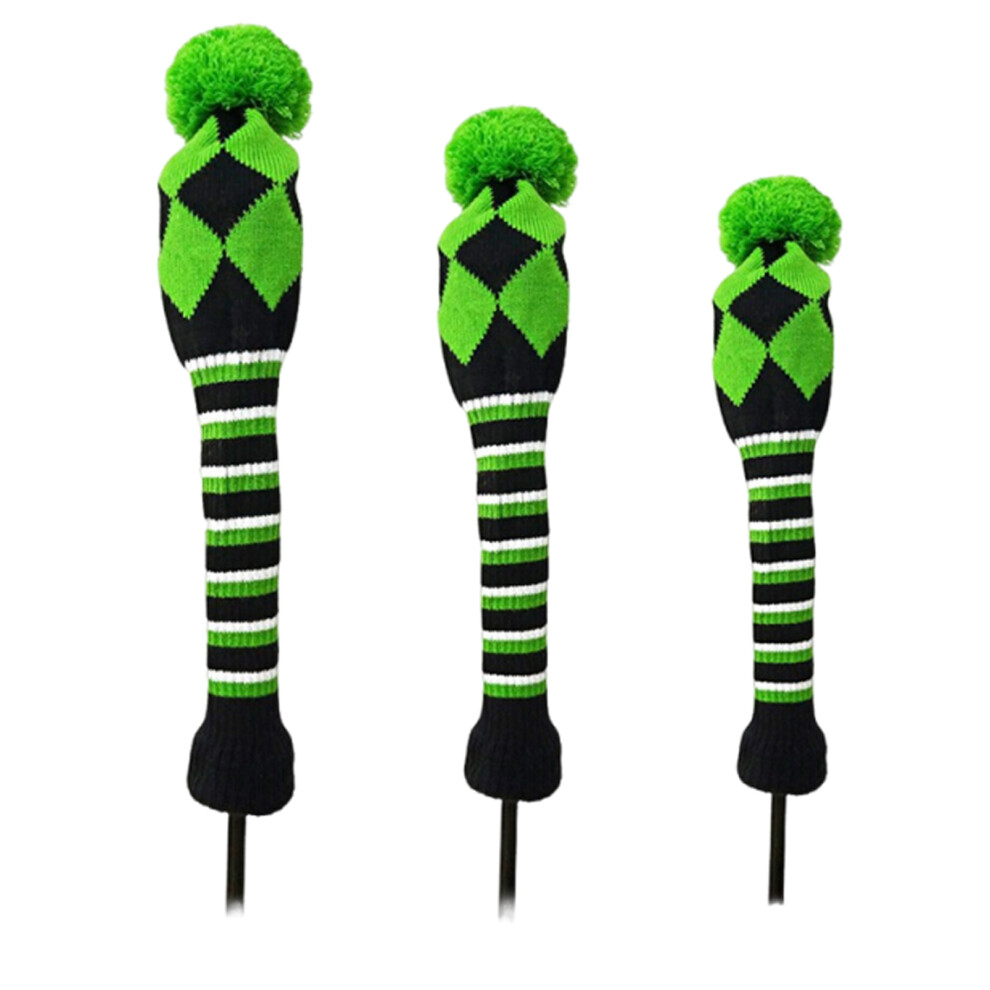 (green) Essential Gear Golf Club Head Covers Three Piece Set Green Golf Wood