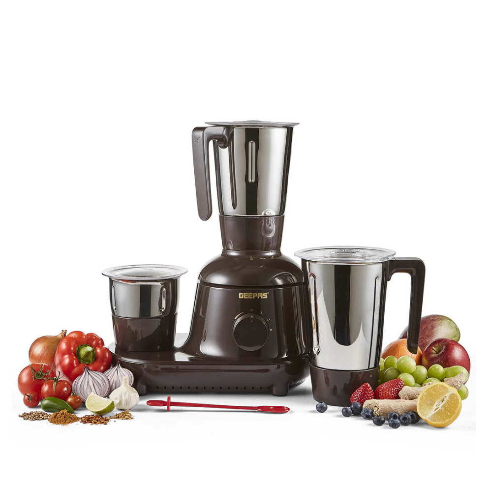 GEEPAS 600W 3-in-1 Mixer Grinder, Stainless Steel Jars & Blades