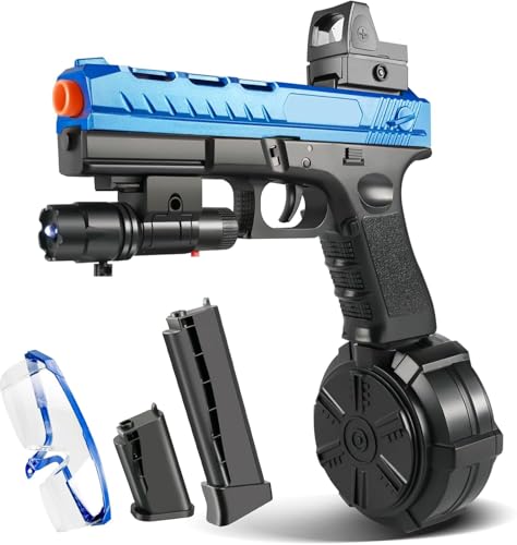 Splatter Ball Gun Automatic, Gel Ball Blaster Gun Full-auto and semi-auto with Goggles, Long Range Blowback Pistol for Shooting Team Games Outdoor Activities Ages 8+ (Blue)