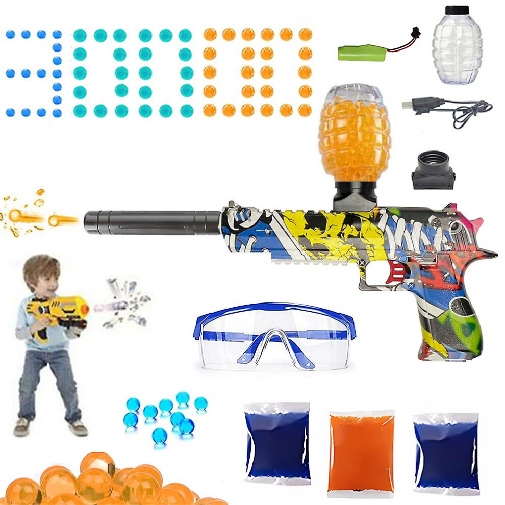 Gelsoft Gel Blaster Water Splatter Bullet Toy Gun, Bright Graffiti Coloured, Electric Full Auto Outdoor Shooting Games, High Speed + 10,000 balls