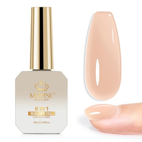 MIZHSE Nail Builder Gel - Nude Builder Gel in a Bottle, 8-in-1 UV Gels for Nails Extension/Strengthener/Base Coat/Nails Glue, 16ML,Nude