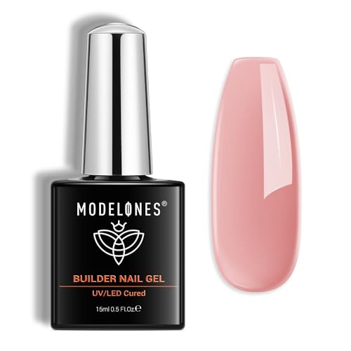 Modelones Builder Nail Gel, Pink Builder Gel for Nails, Hard Gel Builder Nail Extension Gel Base False Nail Tips Glue Builder Gel in a Bottle 15ML