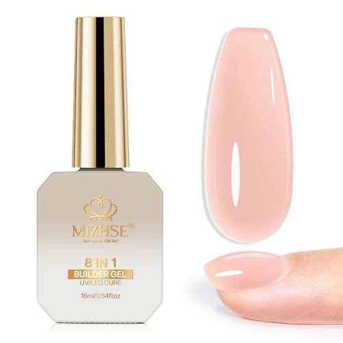 MIZHSE Builder Gel for Nails, Pink Builder Gel in a Bottle, 8-in-1 Building Gels for Extension Hardener Strengthener Nails Glue, UV Gels Base, 16ML, Pink