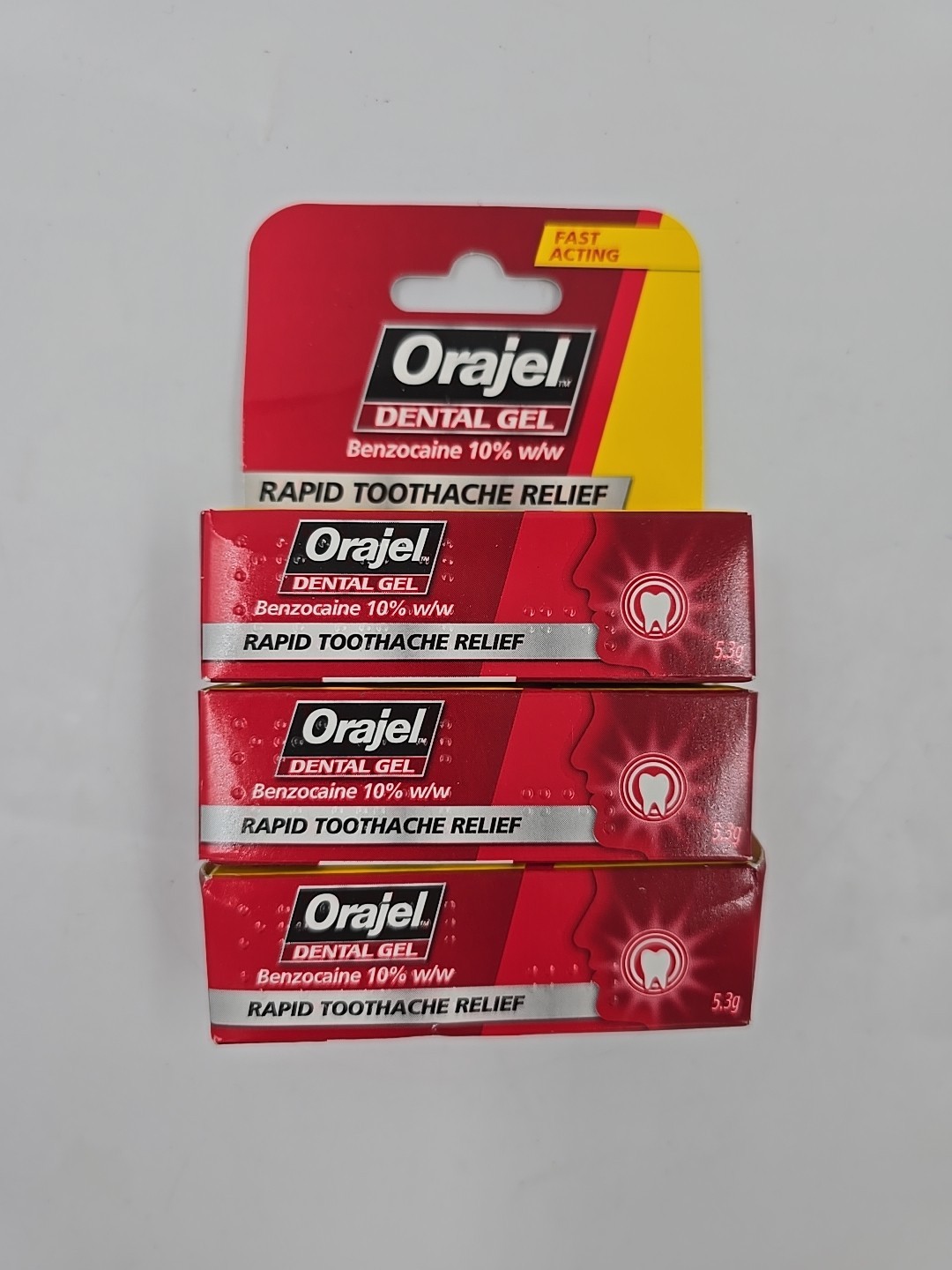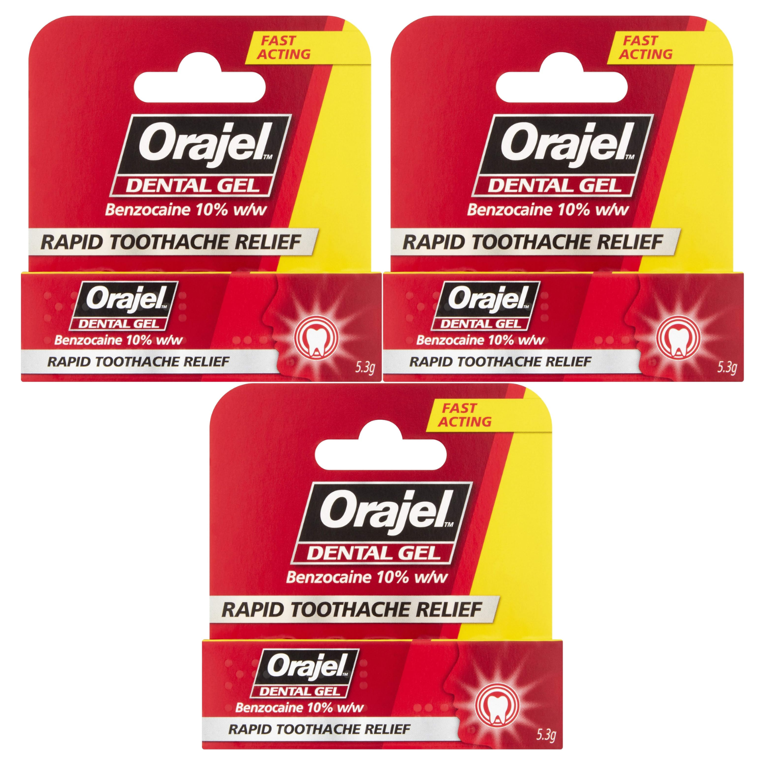 3 x Orajel Extra Strength acute toothache dental gel – 20% w/w Benzocaine 5.3g
