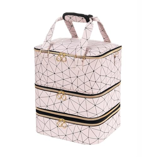 GWCYMYD 3 Tier Nail Polish Organizer Bag, Nail Polish Organiser Case with Carrying Handle and Shoulder Strap, Large Capacity Gel Lamp Storage Bag for Home Traveling Outdoor