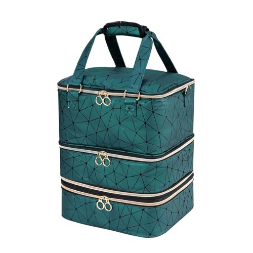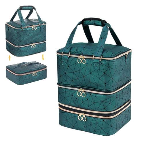 Double Layer Carrying Case PU Storage Bag Portable Nail Polish Organizer Case for Makeup,Nail Lamp,Gel Nails,Nail Polish Kits for Manicure(Green)