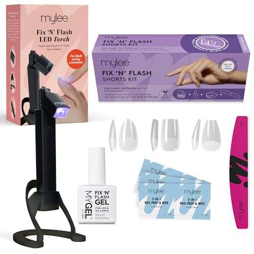 Mylee Fix N Flash Soft Gel Tips Kit with LED Torch - 3 Shapes, 216 Pcs, Portable Gel Polish Lamp, USB Rechargeable, Movable Head, Prep Wipes & Half-moon Nail File, Full Cover, Nail Art Extensions