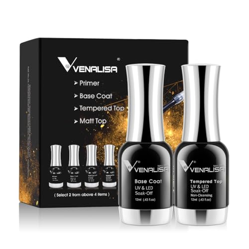 VENALISA Gel Nail Polish 12ml Base Coat and No-wipe Top Coat 2pcs Set Shine Finish and Long Lasting Soak Off LED Nail Lamp Gel Base Top Coat Nail Art Design Manicure Gifts for Girls