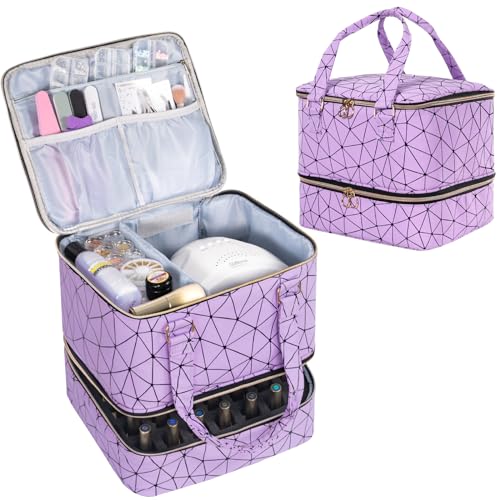 Uross Nail Polish Organizer Bag Holds 42 Bottles Nail Polish & Nail Lamp, Gel Nail Polish Organizers and Storage Box for Nail Tech, Nail Kit Supplies Organizer Case - Purple