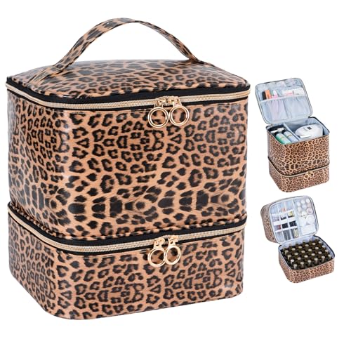 Uross Nail Polish Organizer Bag Holds 42 Bottles Nail Lamp, Gel Nail Polish Organizers and Storage Box for Nail Tech, Nail Kit Supplies Organizer Case - Leopard