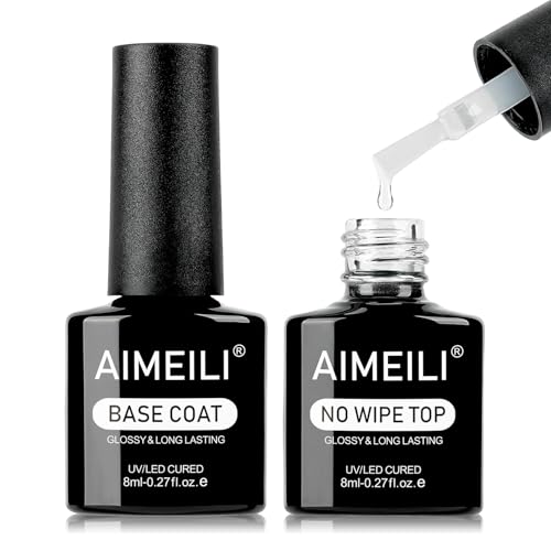 AIMEILI Gel Nail Polish No Wipe Gel Top and Base Coat Set - Shine Finish and Long Lasting Soak Off UV LED Nail Lamp Gel Base Top Coat Nail Art Design Manicure for Girls 2×8ml