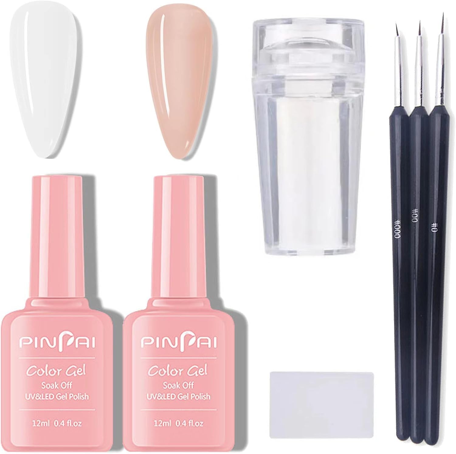 French Manicure Gel Polish Set - White & Nude UV Gel Polish Kit with Nail Stamp