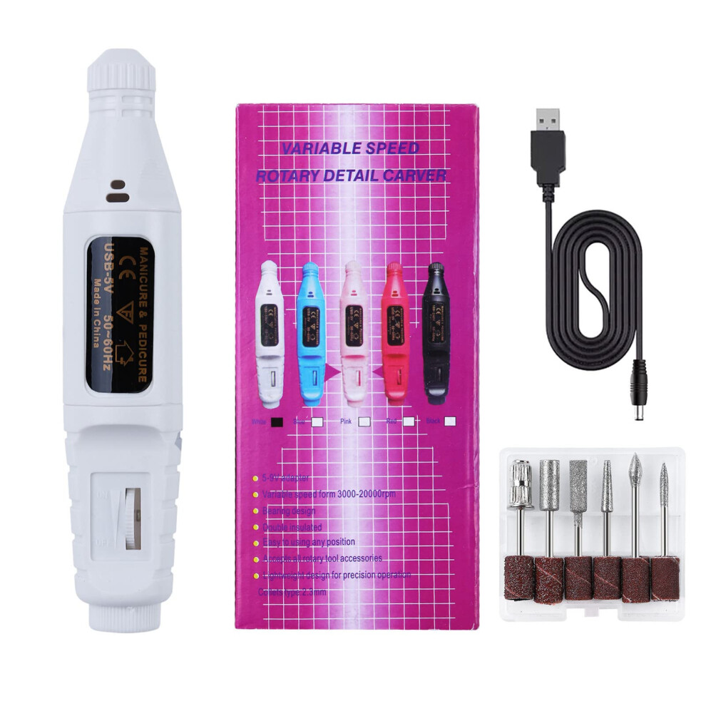 Cordless Electric Nail Drill Kit Acrylic Gel Manicure Set with 6 Bits 100-240V