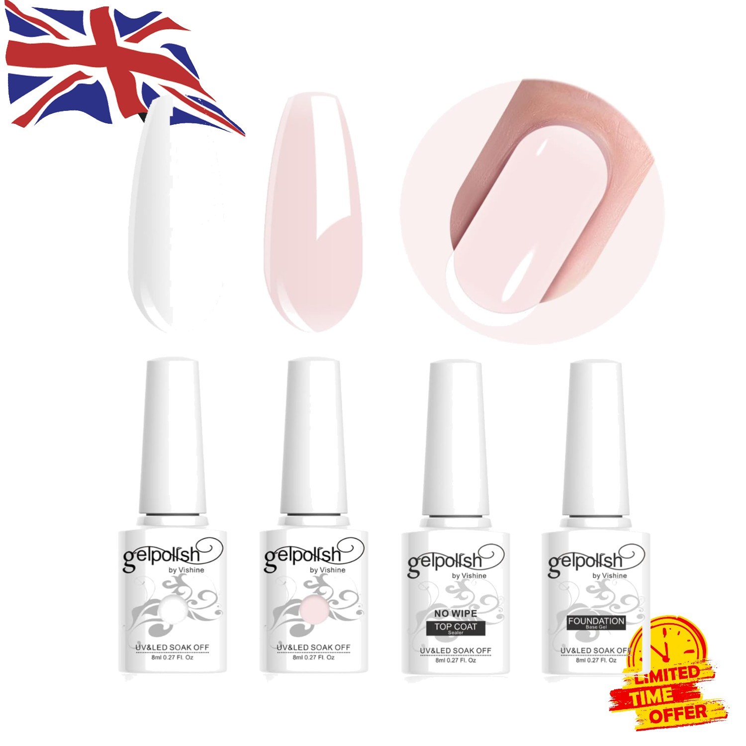 Luxury French Manicure Gel Kit - 4 Colors, Base & Top Coat, UV/LED Safe
