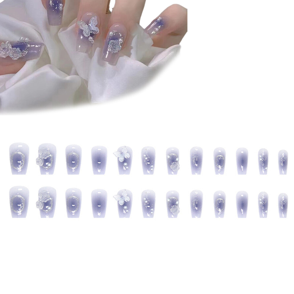 Long-Lasting Gel Polish Manicure Set, Handmade Press On Nails with Reusable Manicure, 12 Different Sizes in Butterflies Design Glossy for