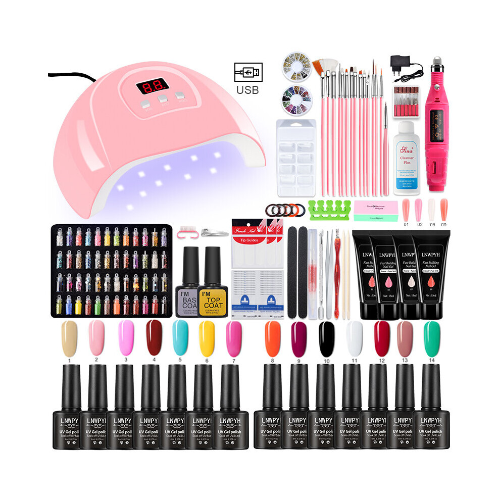 Poly Nail Gel Kit Professional Nail Set With 54/36/24W UV Lamp Acrylic Extension Gel Nail Polish All For Manicure Gel Tools Set