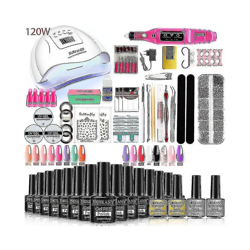 (YH04-5) Nail Gel Kit Professional Nail Set With 120w/54w Uv Nail Lamp And Nail Drill Compatible All Drying Gel Nail Polish Manicure Set