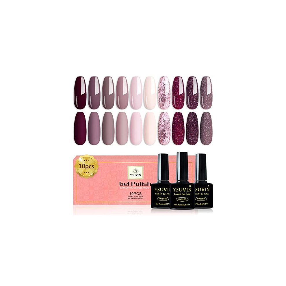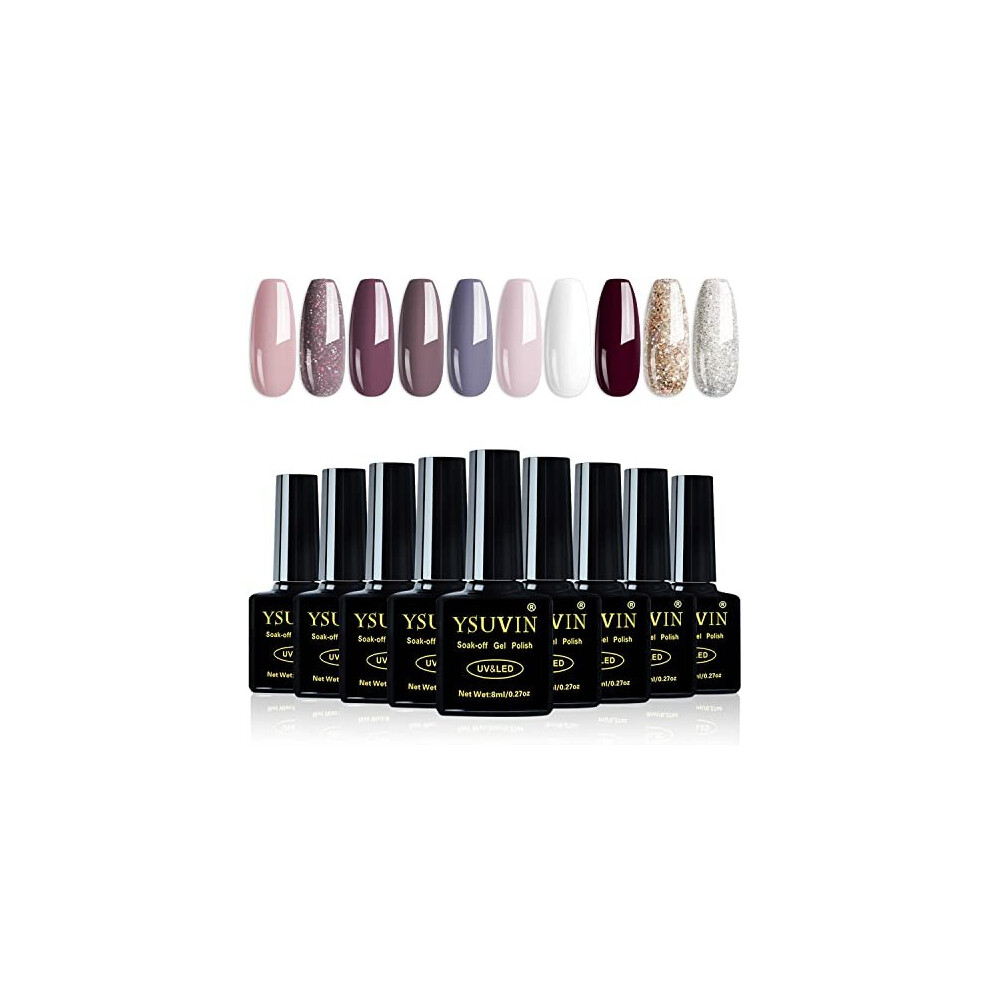 Gel Nail Polish Set - 10PCS Nude Pink Grey Red Glitter Sparkle White Gel Nail Polish, Soak Off UV Gel Nail Varnish Manicure Kit Cured Gel Required For