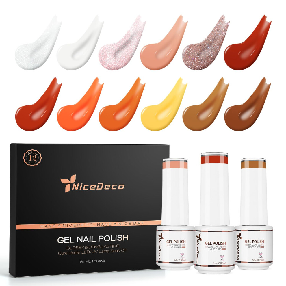 Nicedeco Gel Nail Polish Nail 12 Colors, Long Lasting High Shine Nude Pink Orange Brown Fall U V Gel Manicure Nail Art Kit 7